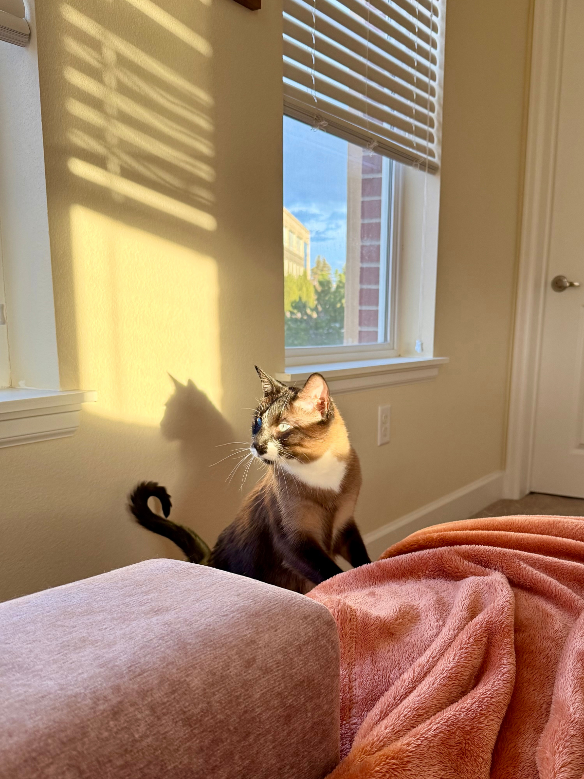 My Siamese mix, Kai, is my overly clingy (and very spoiled)